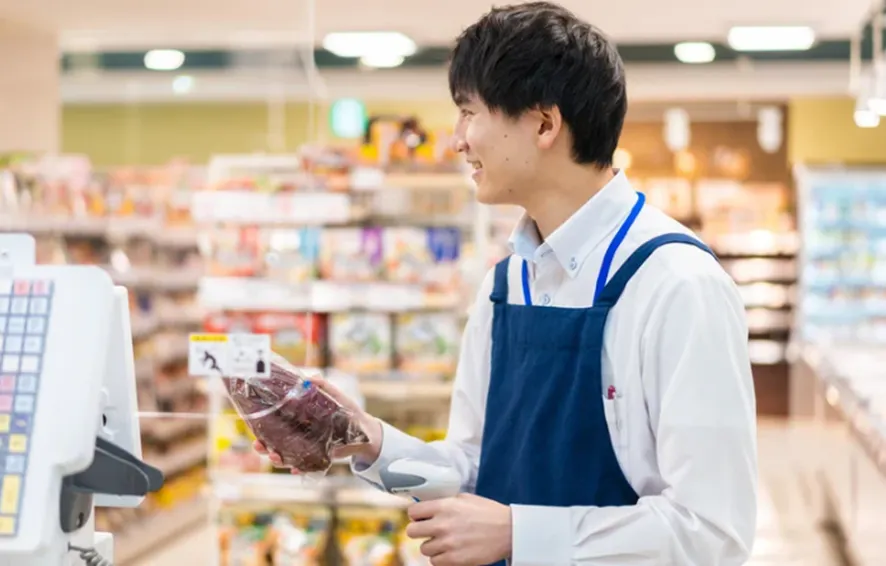スーパーやおかしやさんで、ほしいものがすぐ見つかるように、きれいに品物をならべてくれるスタッフだよ。そしてさいごに、レジで「ピッ!」ってお会けいをしてくれるんだ。たくさんのお店に、たくさんの「かいものスタッフ」がいて、お手伝いをしてくれるよ。