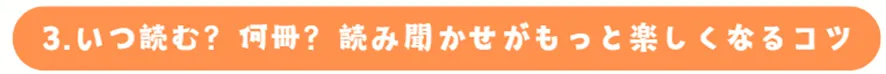 読み聞かせをする時間は、「夜、寝る前」に行うご家庭が多いとされています。一日の終わりにゆったりした気持ちで絵本を読めば、お子さまは安心して眠りにつけますね。もちろん、ご家庭の生活リズムに合わせて、親子がリラックスできる時間ならいつでも大丈夫ですよ。