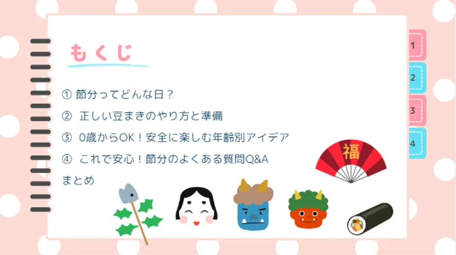 この記事では、節分の基本的な意味や正しいやり方はもちろん、最も大切なお子さまの安全を守るための具体的な注意点や、0歳からでも安心して楽しめる年齢別のアイデア、よくある疑問へのQ&Aまで、わかりやすくガイドします。