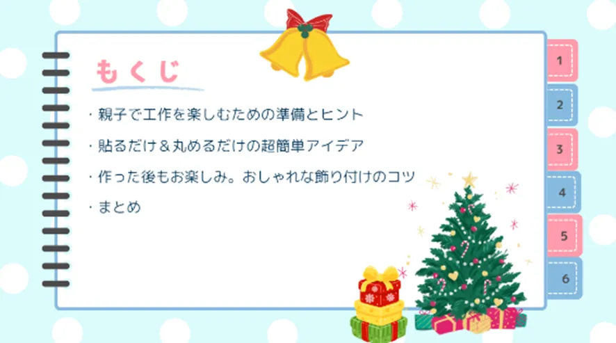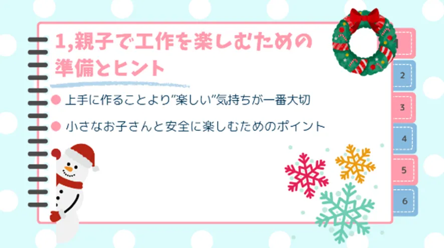 まずは、親子で工作の時間をめいっぱい楽しむための、ちょっとした心構えと安全のポイントをご紹介🎅