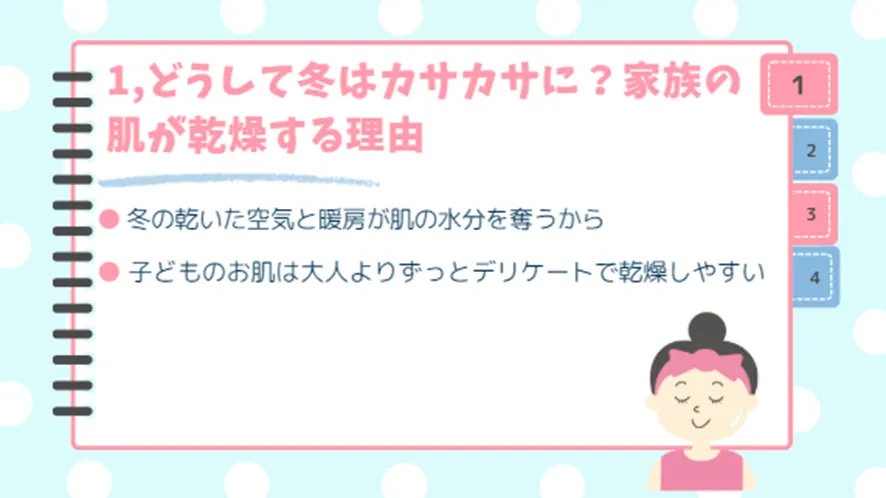 ここでは、冬の空気と暖房が肌の水分を奪うこと、そして特に子どもの肌が大人よりデリケートで乾燥しやすい理由について、分かりやすく説明します。