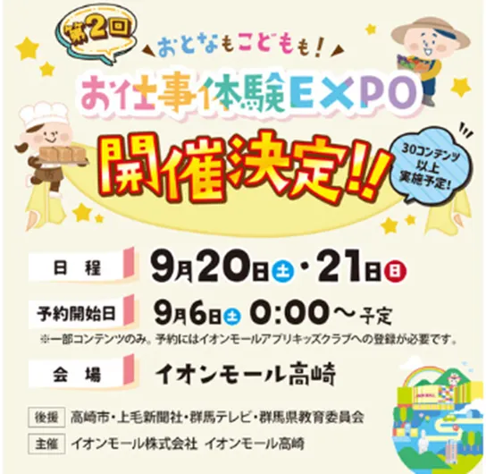 9月、イオンモール高崎では「お仕事体験EXPO」を開催致します
