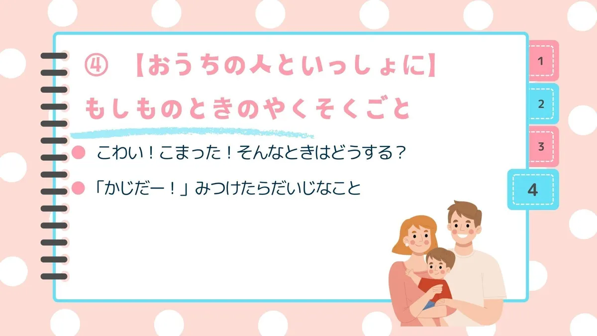 もしもこわいとき、こまったときはどうしたらいいか、おうちの人といっしょにかくにんして、大切なやくそくごとをおぼえておこうね。