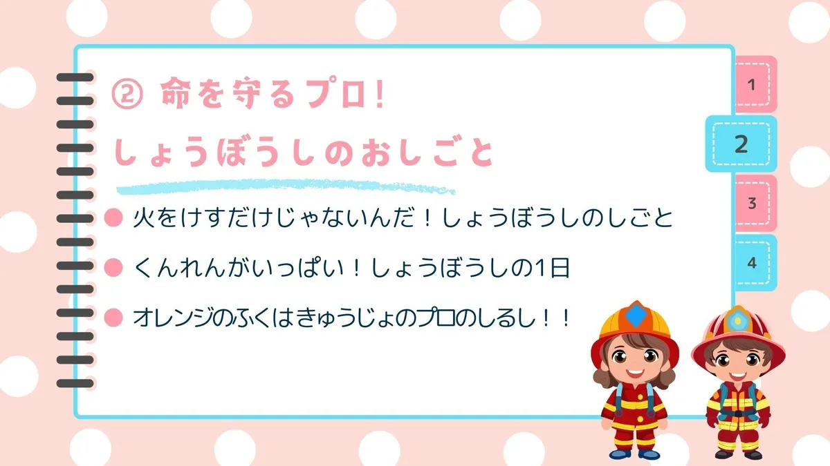第1弾は、いつでも子ども達のヒーロー、街の安全を守ってくれる警察官・消防士さんのお仕事。