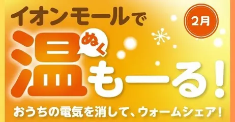 ■イオンモールで温(ぬく)モール おうちの電気を消して、ウォームシェア! おうちの電気を消して、ウォームシェア!いつでも快適なイオンモール高崎で体も心もぬくぬく過ごしませんか?寒い冬の時期に快適に過ごしていただけるように、イオンモール高崎ではお買物・お食事はもちろん、館内で楽し